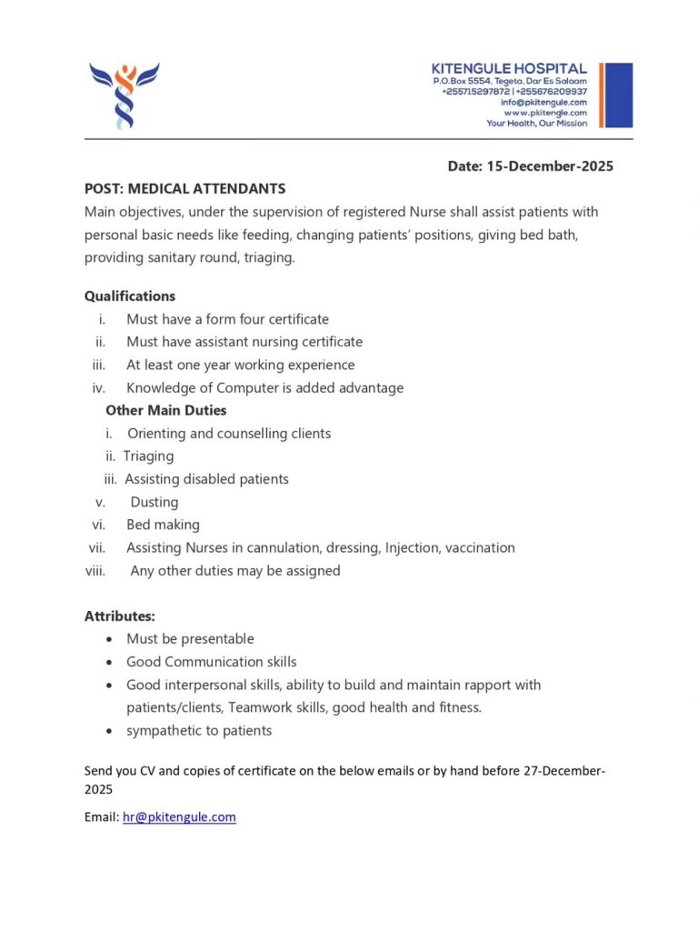 Medical Attendant Job Vacancy at Kitengule Hospital